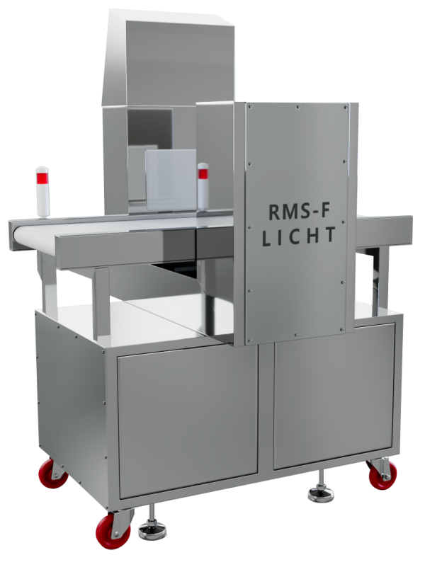 RMS-F(식품 방사선 모니터링 시스템)는 식품이 컨베이어를 통해 검사대에 들어갈 때 센서와 광증배관을 통해 검사 대상에서 방출되는 방사선량을 수치로 정확하게 보고합니다.